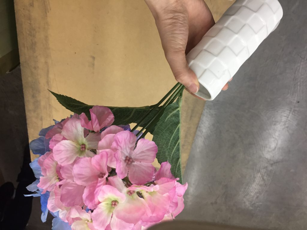 アジサイ(造花)と花瓶は、100円均一で購入。